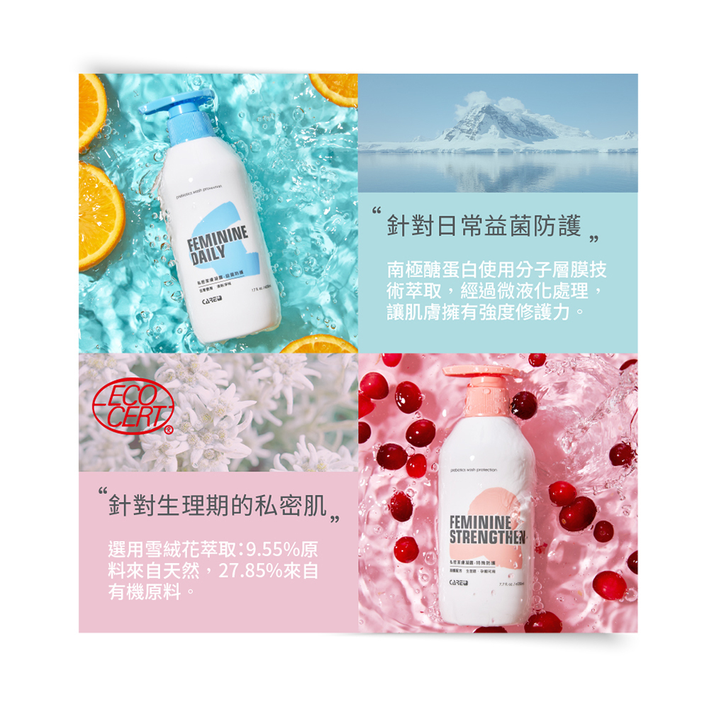 【蓓膚美 Care+】經典呵護組(私密潔膚凝露*2瓶+私密柔膚濕巾*4包)